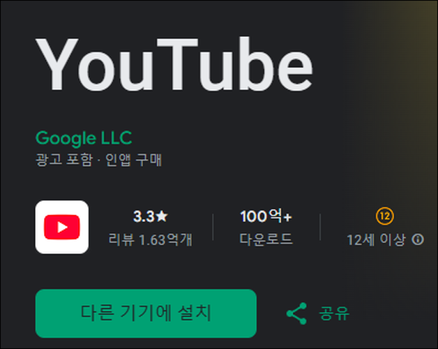 - 구글 플레이 스토어에 접속하여 유튜브 앱을 설치합니다.