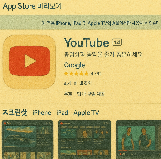 - 앱스토어 유튜브 링크에서 유튜브 앱을 설치합니다.